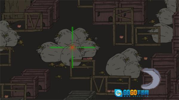 在游戏场景里有个储存谷物的建筑,你需要定位里面的啮齿动物。通过操作左下角的转盘来移动视角,把瞄准标记对准这些小动物。