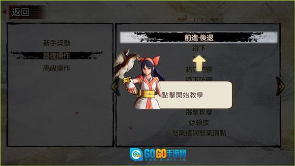 这里面包含了前进、后退、必杀技、踢拳攻击等基础操作,点击进入即可开始学习。