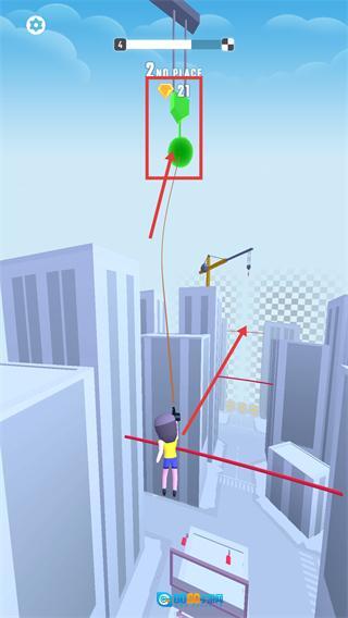 当关卡内处于【第二名】状态时,要借助摇摆机制去接触【绿色球体】道具,以此提高排名并加快推进速度。