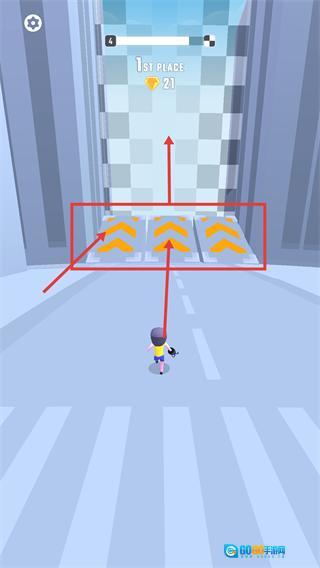 临近终点时,踏上【黄色箭头-加速板】能够实现快速冲刺,帮助抢占【1st-PLACE】的领先名次。