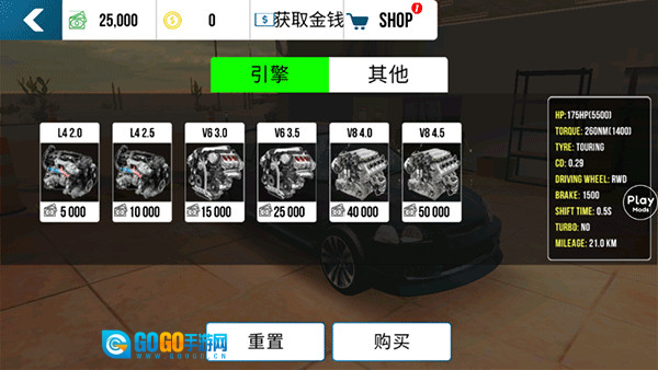 在升级界面,你可以对汽车的所有配件进行升级