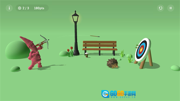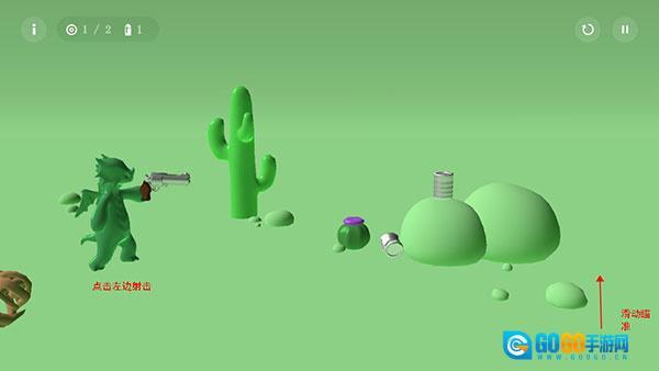 游戏里的每个小关卡都各有特色,通关条件很清晰:我们要用子弹击中对应物品,只有当子弹数量和物品数量完全一致时才能过关。操作方式也很简单,你可以在右侧滑动屏幕来调整射击方向,点击左侧就能发射子弹。界面左上角会显示靶子的数量和已经使用的子弹数,右上角则是重新开始和暂停退出的功能按钮。