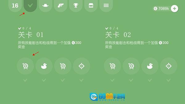 点击界面左上方的对勾形状图标,即可进入关卡选择页面。这里的每个大关卡都包含四个独立的小关卡,完成所有小关卡的挑战后,就能解锁对应的通关奖励。