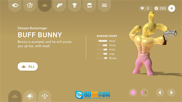 进入首页后,点击那个形似帽子的图标就能进入射手相关的操作界面。在这个界面里,你可以完成射手的选购与替换,另外,射手的颜色也是可以调整的。
