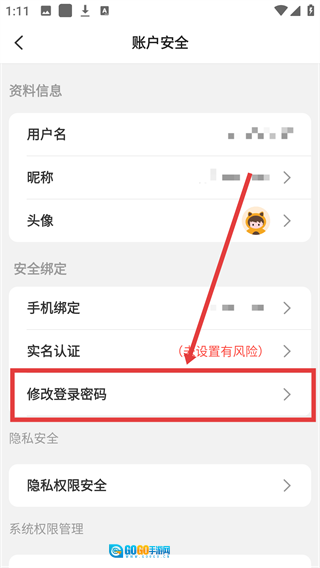 在账户安全页面,点击【修改登录密码】选项,就能进入密码修改的页面了。