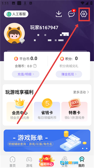在游戏平台首页,点击底部的【我的】选项,就能进入个人中心页面,接下来就可以着手进行账号安全设置的相关操作了。