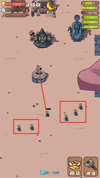 第1天场景里出现的绿色敌人要优先处理,另外还要注意资源栏显示的【25/30】这类数值的消耗状况。