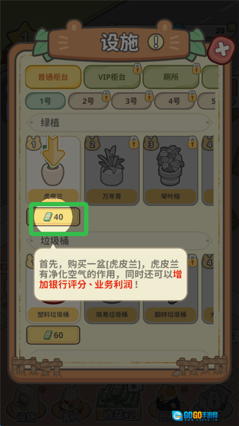 升级建设钱庄,吸引新的顾客前来。