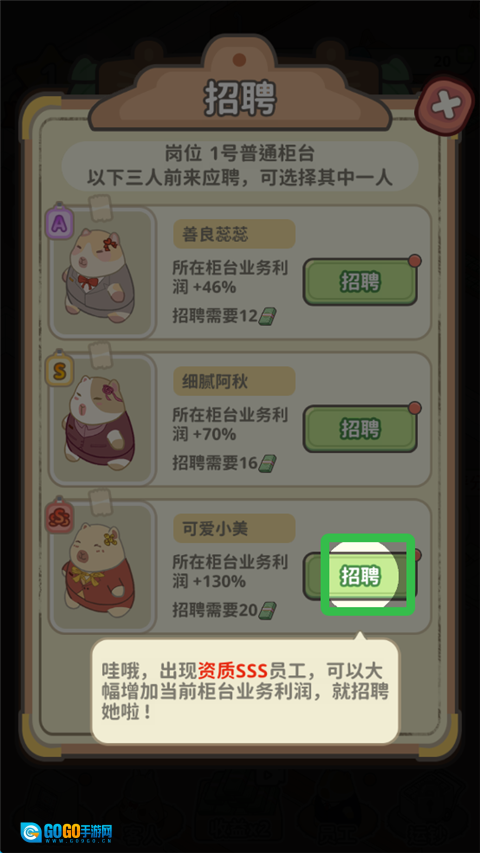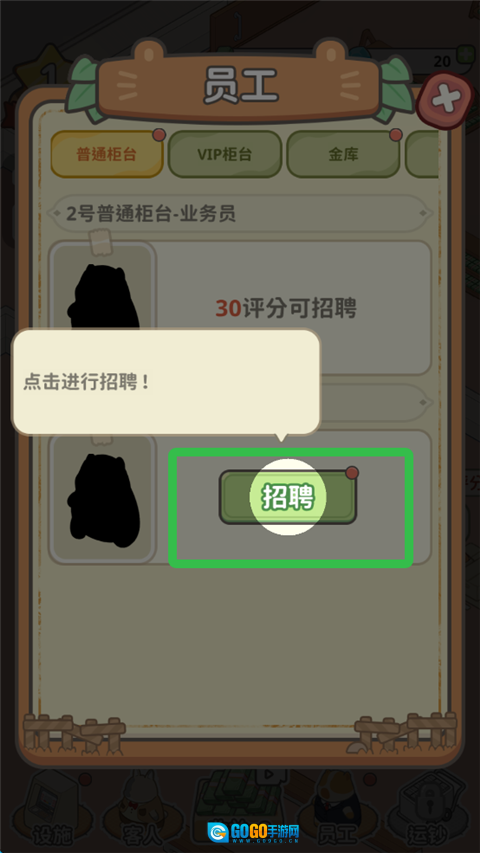在本站安装动物钱庄游戏,启动游戏后,点击员工选项进行招聘操作。