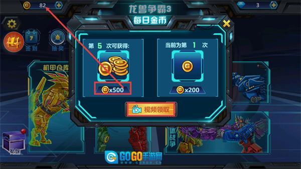 在【每日金币】页面,借助【视频领取】功能获取当前第1次的【200金币】,当累计领取次数达到第5次时,就能获得【500金币】的奖励。
