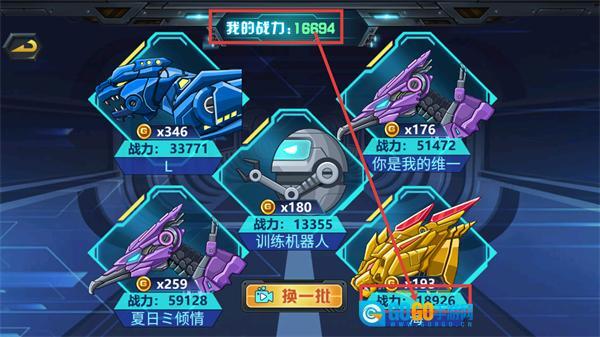 查看【我的战力-16694】,对比界面里机甲的【战力】数值,挑选战力匹配的对手,也能点击【换一批】来刷新对手列表。