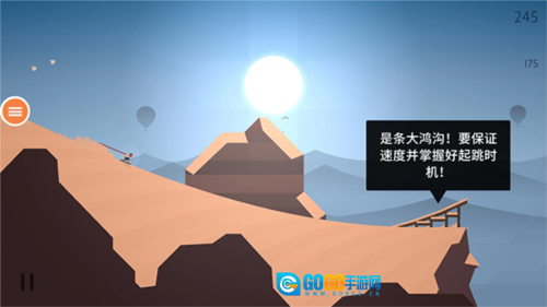 :每名角色都有自己的属性和能力,探索丰富多彩的景观,每个地区都有独特的视觉效果和游戏体验。打开《阿尔托的奥德赛》这款游戏,启动后开始向前滑行。前方不远处就是一道大鸿沟,在即将抵达鸿沟边缘前,要全力加速。等速度提升到一定水平后,接着继续向前滑行。