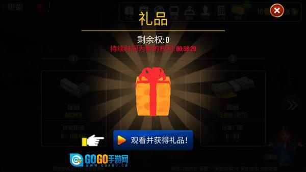 不过跑图这种方式在前期的收益会比较有限,要是我们想购置新车,进度就会很慢。所以在这里,我给大家分享一个前期特别实用的办法——刷礼品。刷礼品在前期能带来的收益相当可观,毕竟我们跑一局至少得花好几分钟,慢的时候甚至要十分钟以上,这样算下来一局大概能赚5k硬币;但刷礼品的话,看半分钟广告就能拿到好几k硬币,连续刷10分钟的话,收益会比跑图快很多,所以前期用这个方法是很不错的选择。