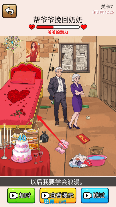 在某个游戏里,有个帮助祖父重新赢回祖母心意的关卡,它既充满趣味又颇具挑战性,接下来为你介绍这一关的通关指南。