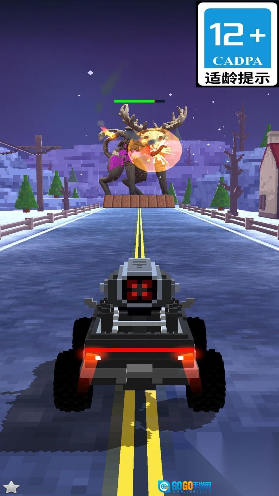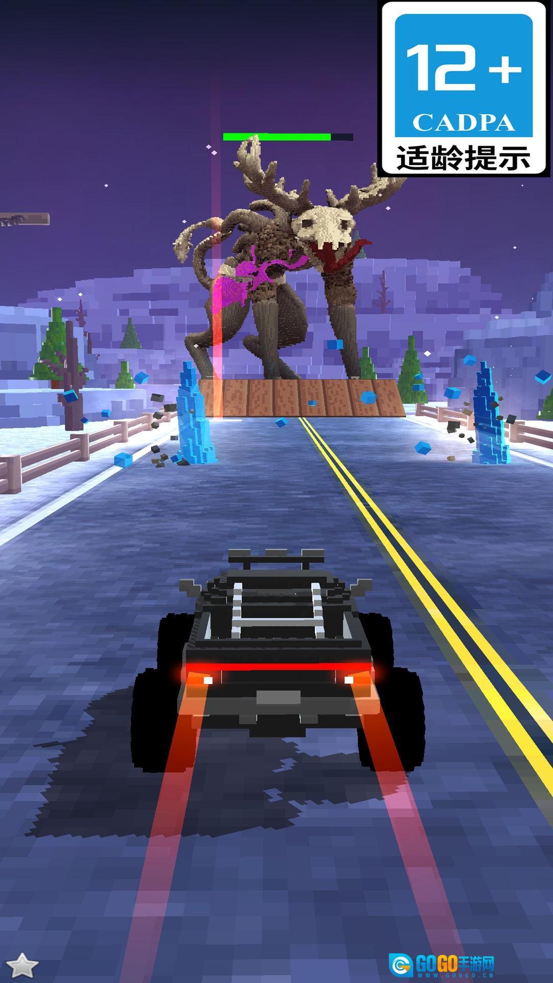 3、赛道上随时会遭遇形态各异的怪兽,成功击败怪兽可获得奖励,但若被怪兽攻击,赛车耐久度会下降。