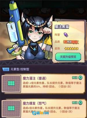 魔法黑猫堪称神级辅助,它能把自身的面板攻击赋予队长,再叠加其他元素加成后,队长的攻击面板相当于翻了好几倍,输出提升甚至远超几十倍。此外,它还能施加血毒buff,并让队长获得额外的行动机会。