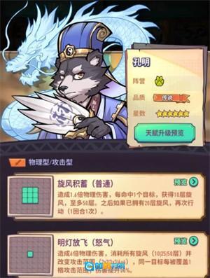 孔明的技能机制是常规攒出旋风效果,大招具备大范围攻击能力,还额外附带多次总计相当于总伤害20%的横扫伤害,输出能力极为强悍,实战中无需关注具体数值,无论攻击哪个目标都能实现秒杀。其定位为核心输出角色,适合搭配的辅助包括月上兔仙、异国女王、时间领主、克鲁索以及魔法黑猫。