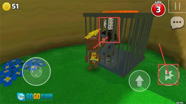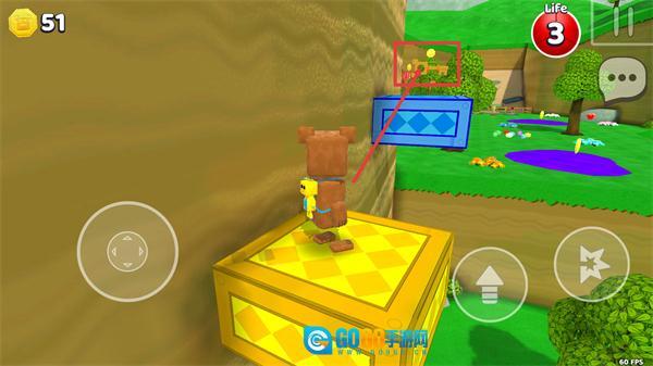 金币数量更新为【51】,利用【黄色箱子】的高度优势,点击跳跃按钮以获取高处物品,同时收集周围的资源道具。