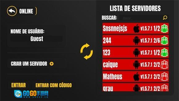 在主界面点击第二个“online”按钮,就能进入联机界面,和其他玩家一同参与竞速。