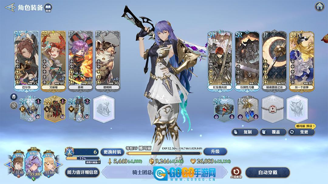 每个英雄可以装备格兰武器,神器和装备