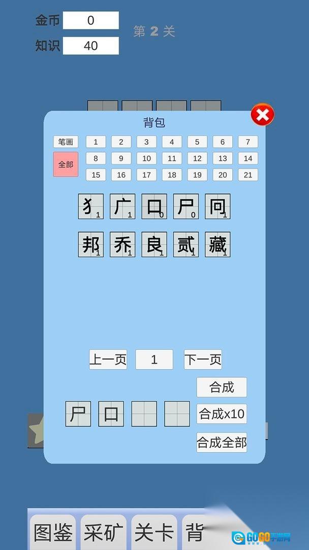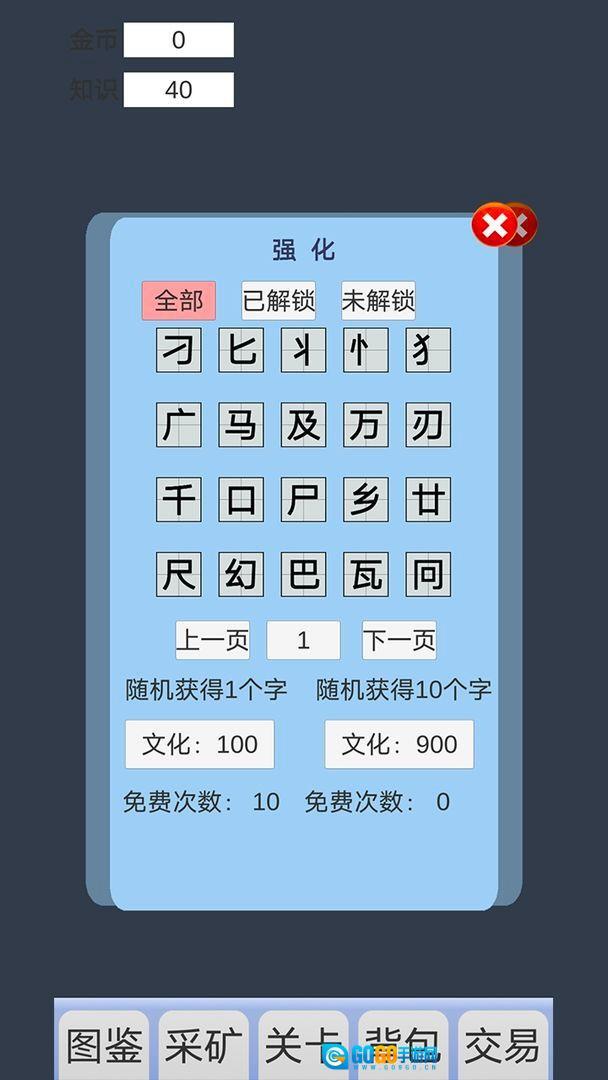 游戏常用汉字字库,依据难度由简至繁划分等级,从基础独体字逐步过渡到复杂合体字,实现循序渐进的学习体验。