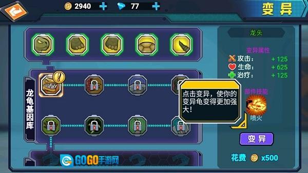 点击变异,使你的变异龟变得更加强大!