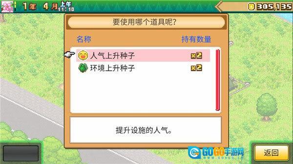 还可以使用不同的道具提升设施的人气;