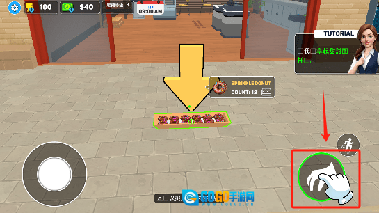 看到门口的甜甜圈,走过去把它拾取起来。