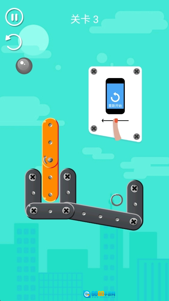 长按屏幕滑动木块到螺丝钉处完成。