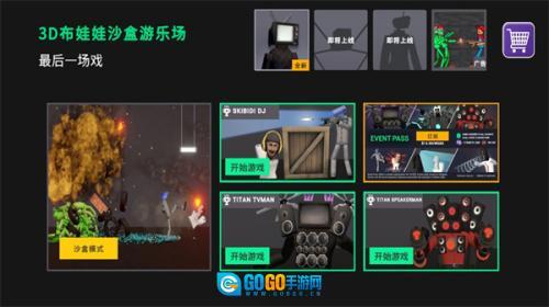 打开并进入游戏主界面后,能看到有沙盒模式、SKIBIDI DJ、TITAN TVMAN和TITAN SPEAKERMAN这四种游戏模式可供选择。