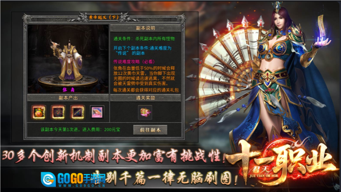 30三十多个副本都有着各自独特的通关要求,像张角副本就需要避开黄巾天雷,打破了传统的打怪玩法。
