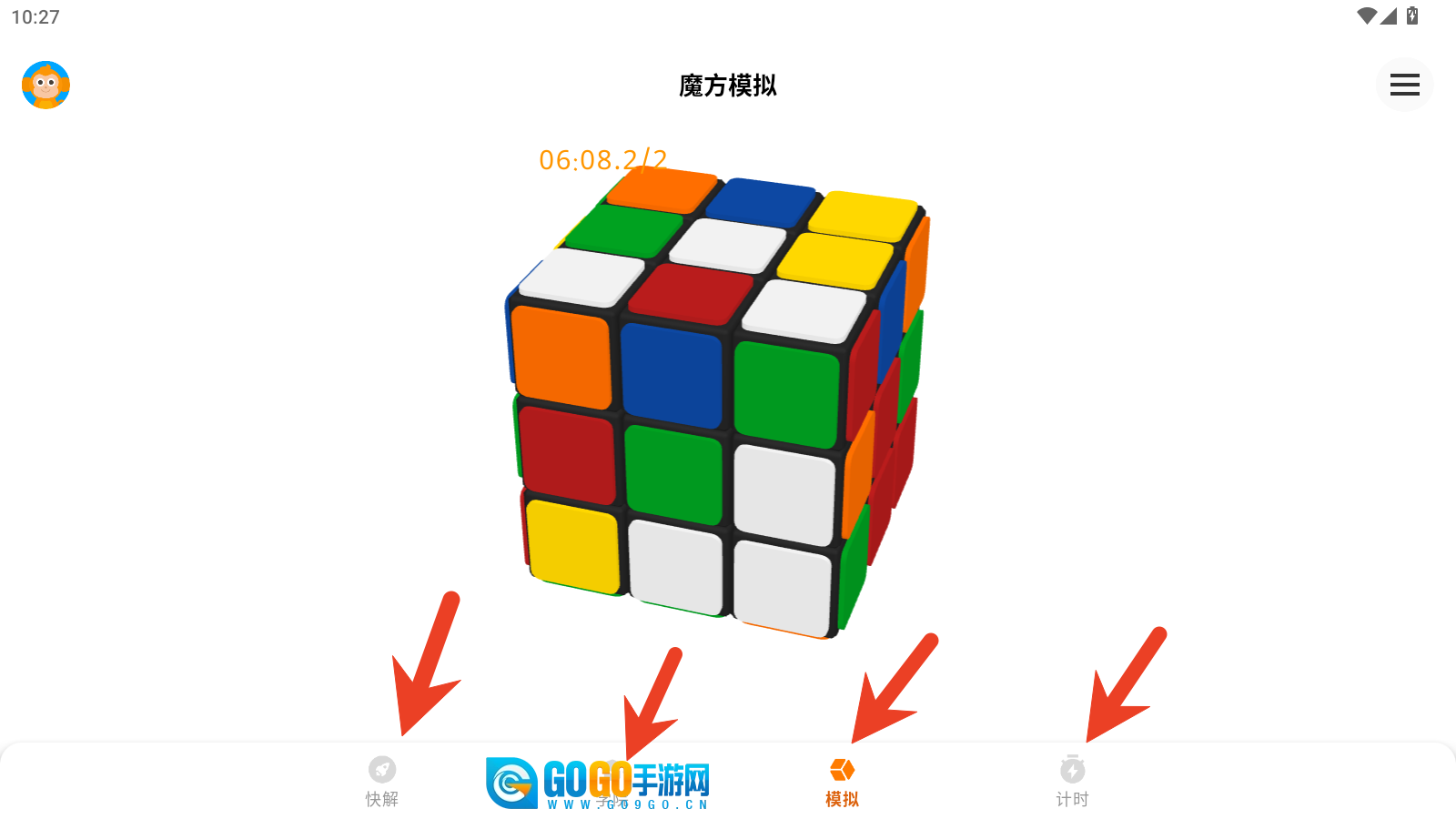 模拟与计时功能都属于魔方的实际操作范畴,二者的差异在于:模拟模式不计时,更适合新手玩家熟悉玩法;计时模式则面向专业选手,用于测试手速。开启计时器后,需要先打乱魔方再进行复原操作。