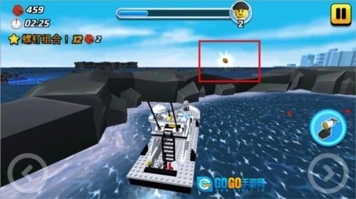 玩家进入海上警察关卡后,先选择合适的海上交通工具,随后正式开始游戏。在追逐坏人的过程中,需要留意金砖位于海上某个礁石圈里。玩家要操控海上交通工具驶入金砖所在的区域,借助金砖附近的跳板让自己升高,同时调整方向朝着金砖前进,这样就能成功获取金砖了。