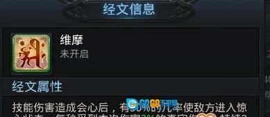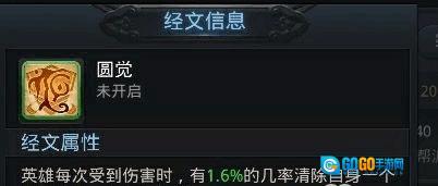 注解:圆觉经文与楞伽经文同属辅助类经文,二者均为受伤害时概率触发的类型。切勿因一星状态下1%和1.6%的触发几率便轻视它们——这只是初始星级的效果,随着经文星级的提升,触发几率也会相应增高。
