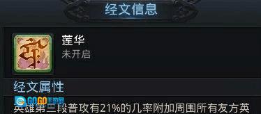 注解:莲华经文的效果和罗睺经文比较相似,要是对它不太了解,大可以把它看作另一个罗睺经文,两者的效果相差不大。罗睺经文的机制是释放技能后,接下来的一次普攻会附带自身物理强度与法术强度总和16.5%的法术伤害;而莲华经文则是在第三段普攻时,有21%的概率附加周围所有友方英雄物理和法术强度之和0.5%的伤害。