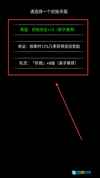 进入游戏后,点击选择一项初始天赋,新手建议选择勇猛。