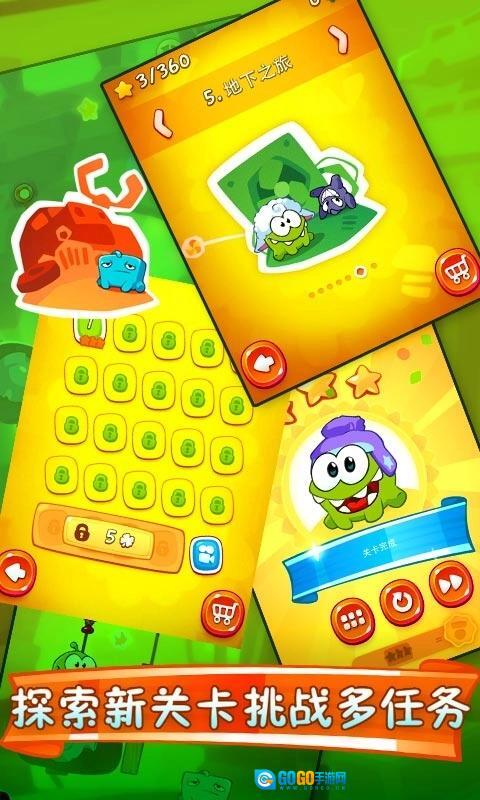 玩家只需动动脑筋,用各种方法割断绳子,可别让小怪物饿肚子呀,而且还有轻松有趣的音效能增添游戏的趣味性呢。