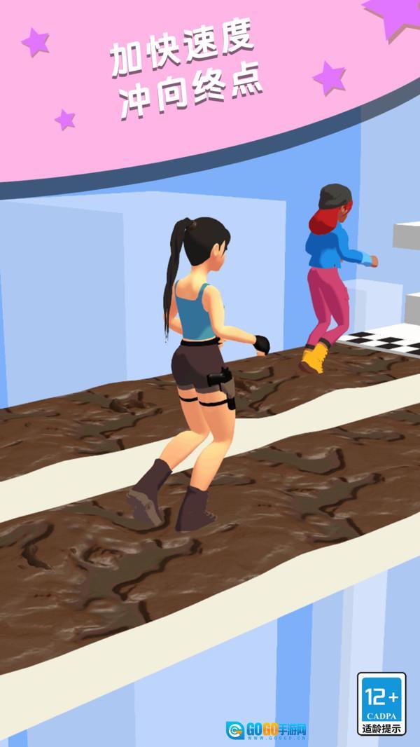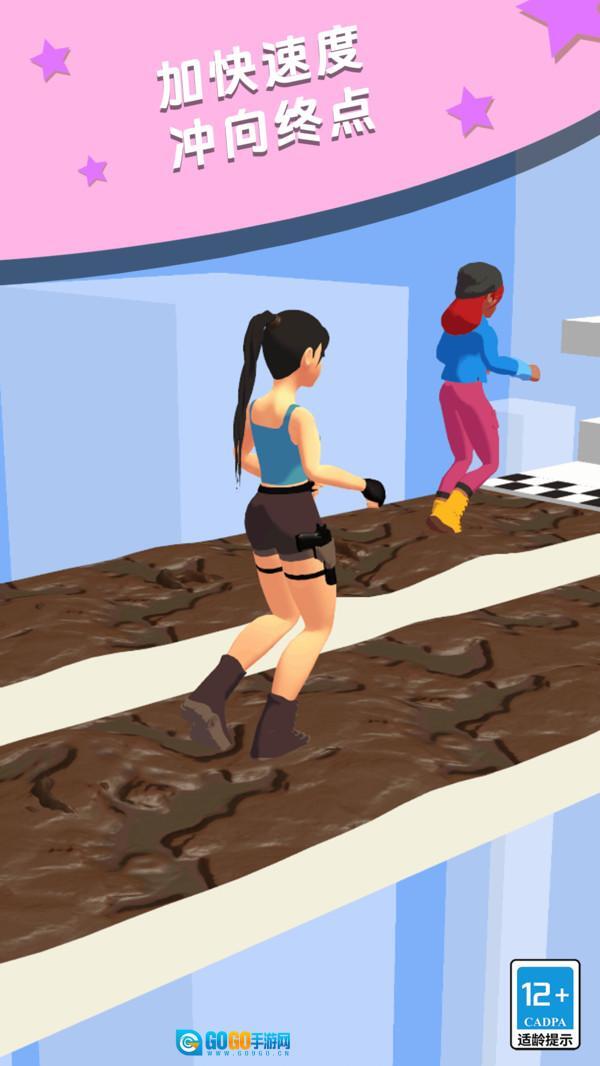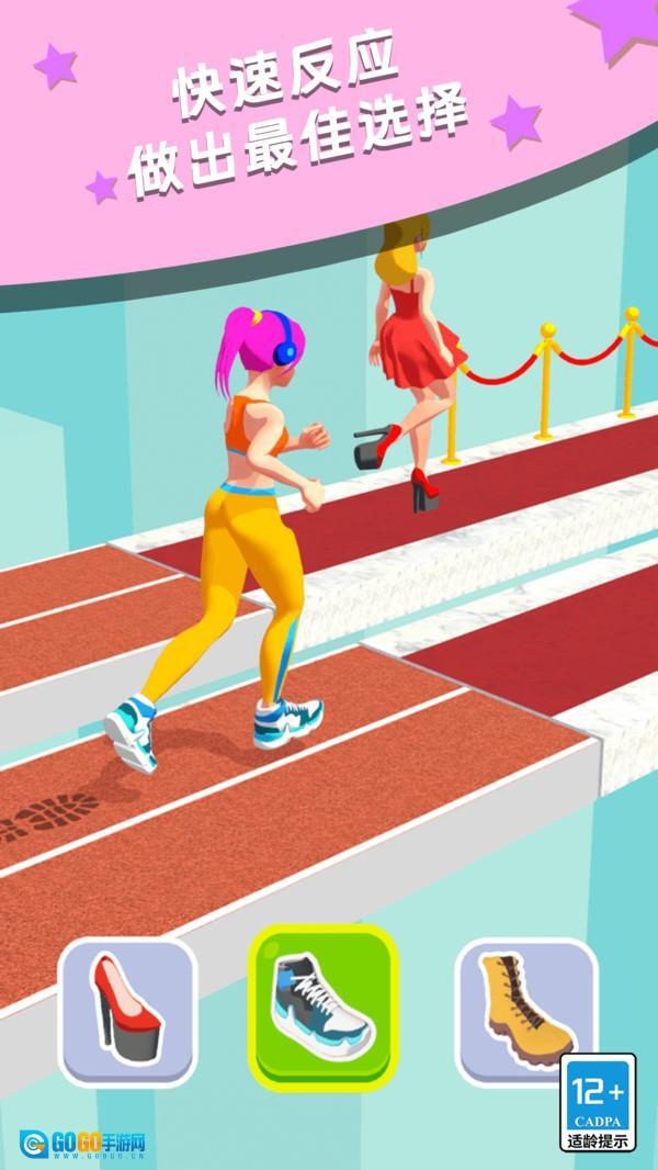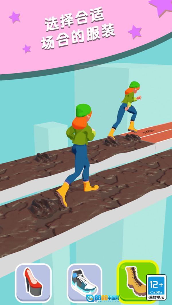 这段文本可以修改为: 这款游戏巧妙地融合了传统的竞速玩法与换装元素,玩家在高速奔跑时,需根据地形变化迅速切换鞋子。