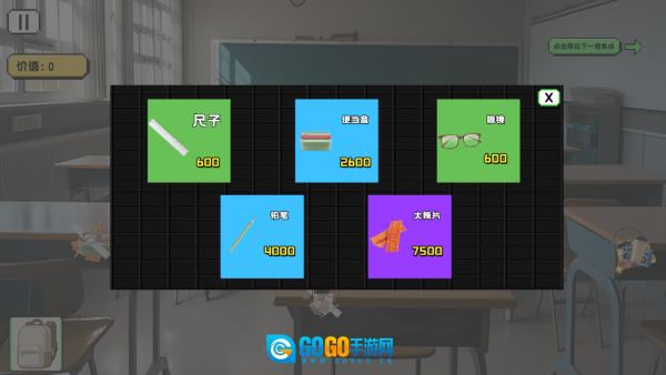 如下图所示,以教学楼为例,教室里存在不少可供收集的物品,并且不同物品的价值存在差异。