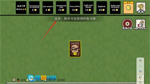 完成任务后,按照任务提示拆开卡包,获取里面的全部卡牌,再通过堆叠这些卡牌来达成目标。