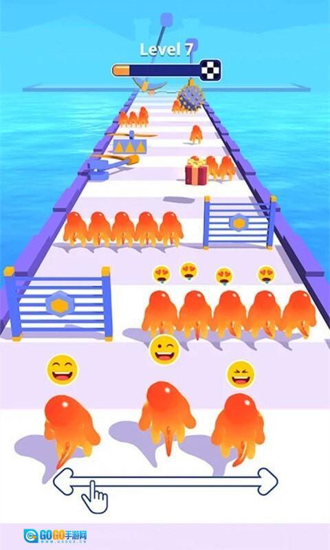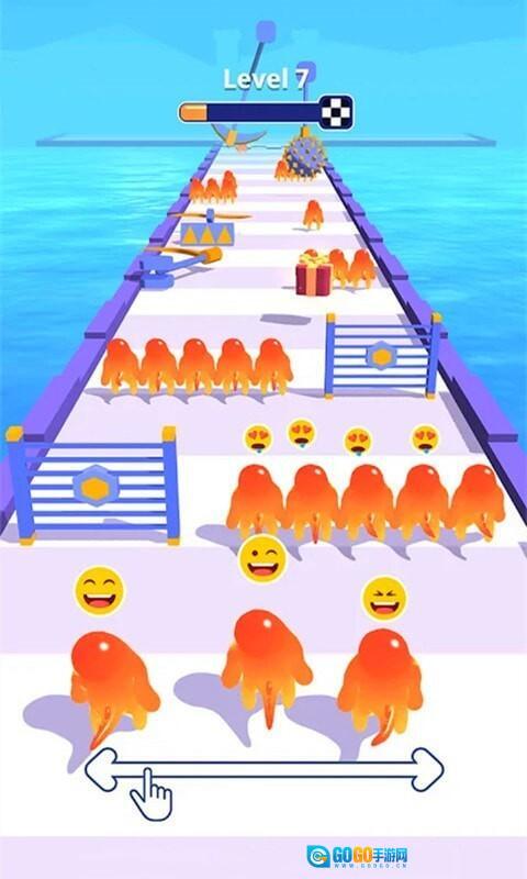 2、奔跑的果冻人借助您的高级位置智能闯过一关又一关,每通过一个关卡都能解锁成就与奖励;