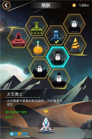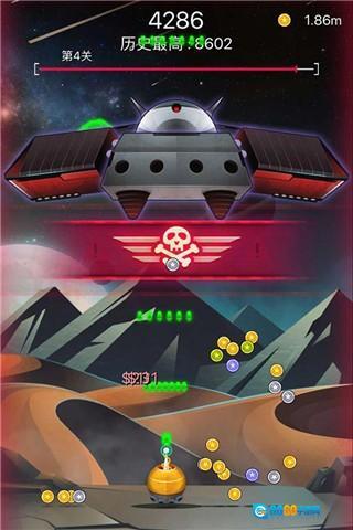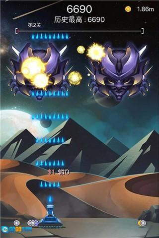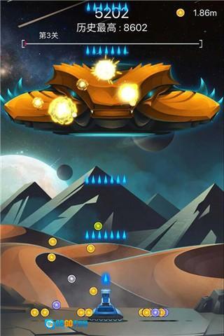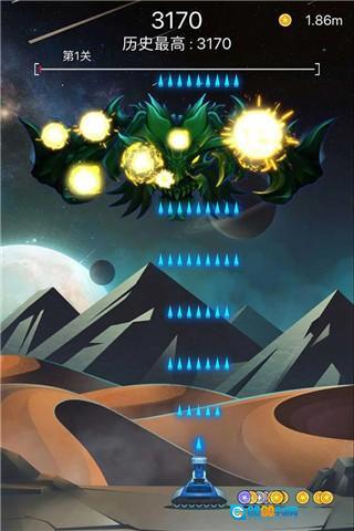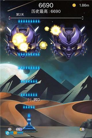 在游戏画面里操控飞船自由移动,同时要灵活闪避飞来的陨石,或者直接将其击毁;击毁陨石可以获取大量金币,这些金币能用来升级飞船,让你拥有更强大的战力去抵御敌人的入侵。