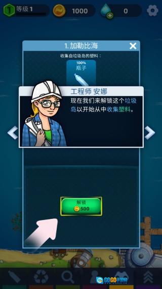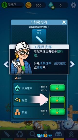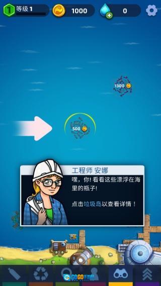 3. 游戏会结合现实中的环保节日推出专属活动,例如在世界海洋日期间上线“全球净滩挑战”,玩家完成挑战后可获得限定款的清洁船外观涂装。进入游戏后我们跟随教程点击中间的小岛。