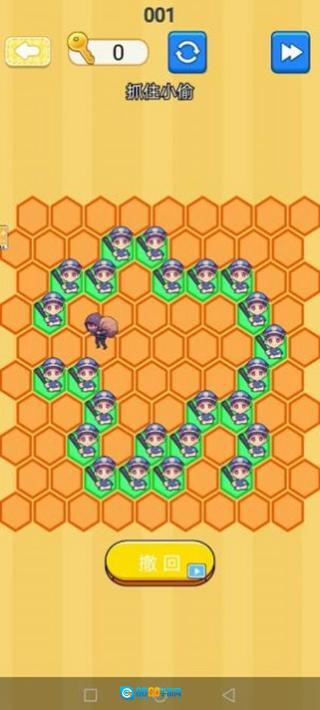 只要把小偷全都包围起来,就算挑战成功,就能解锁下一个关卡。
