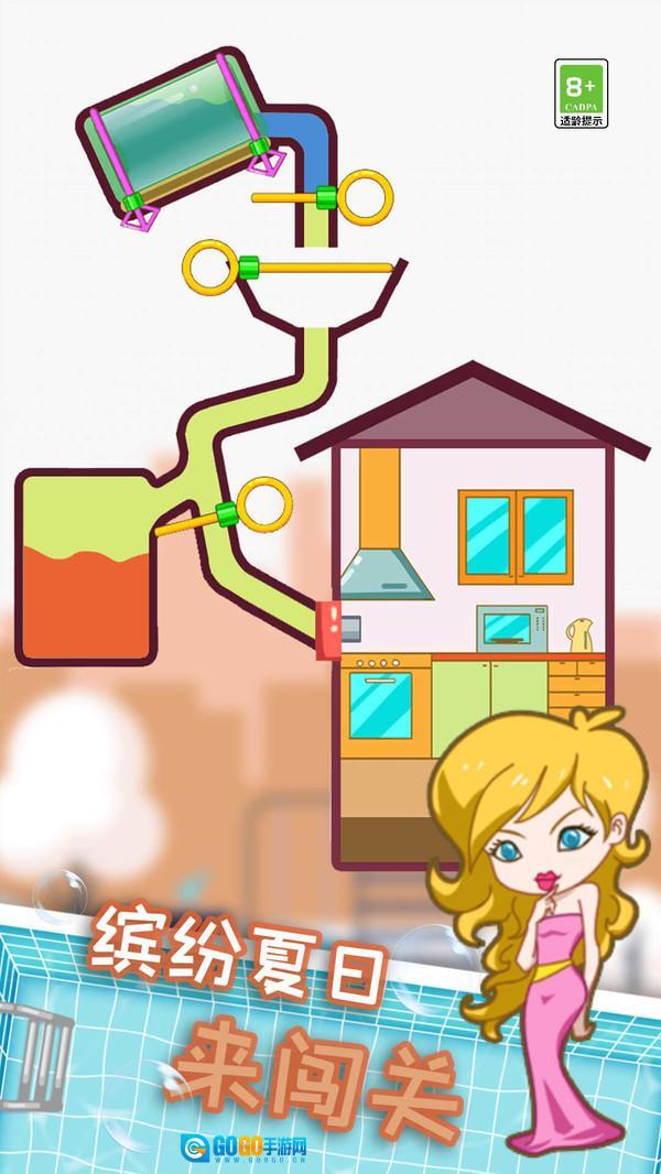 小姐姐爱玩水最新版是一款充满创意与趣味的益智拔针闯关游戏。在游戏里,玩家将化身贴心助手,协助爱干净的小姐姐获取洁净水源。游戏操作简洁易懂,玩家只需用手指轻轻滑动别针,复杂的管道谜题,就能让清澈的水流注入小姐姐的水杯中。