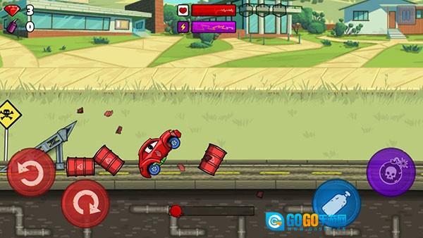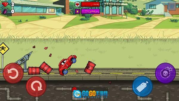 借助虚拟摇杆操控赛车行进,在极速驰骋时躲避路障、陷阱和敌方发起的攻击,并且收集路上的金币来提升赛车性能。