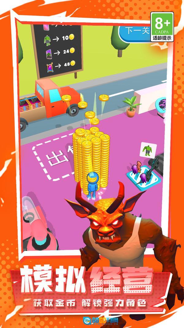 3、赛道上散落着大量钞票,玩家在跑酷过程中需灵活调整路线,尽可能多拾取钞票,收集数量直接影响可解锁英雄的品质。