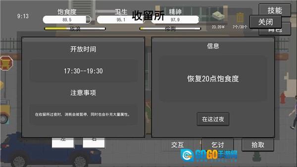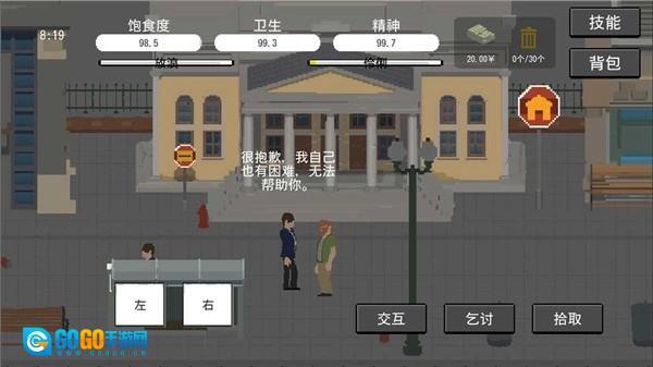 1、在各异的场景里收集资源,解决自身的食物需求,你既可以选择乞讨,也能够通过打工来实现;