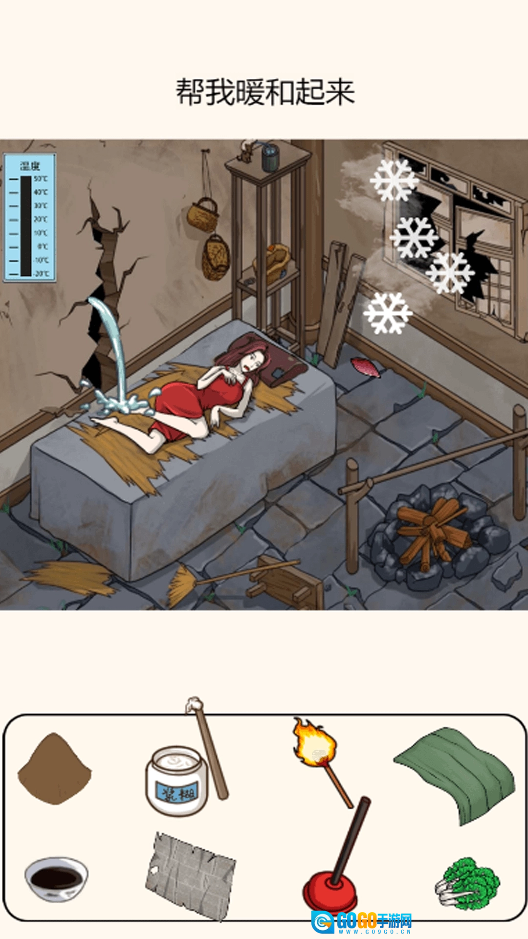 《老六真是秀》是一款别出心裁的取暖主题游戏,玩家能在修缮破旧房屋的过程中体验乐趣!游戏里需要借助各类工具与智慧,巧妙地修补房屋,最终点燃火源,让小姐姐感受到温暖。你准备好了吗?在游戏中,玩家要正确使用各种工具,成功修补好破房子,再为房子生起火,让小姐姐获得温暖。