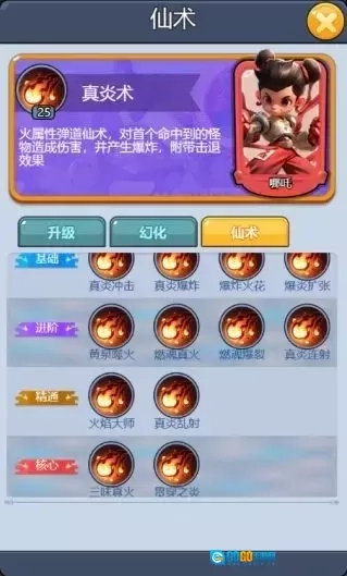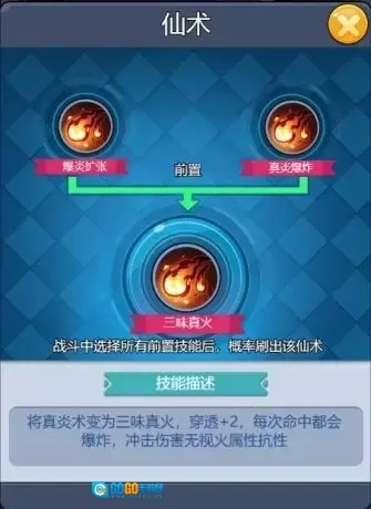 天火诛邪(入门):真炎术每命中12次,便会同时释放1波齐射5枚的真炎弹。